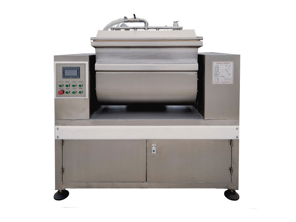 →臥式真空和面機系列  →型號50/75/100/150/200/300型  →功能  主要用來和制餃子皮、餛飩皮、鮮食面、水煮面、掛面等,若更換攪拌器,可適用于速凍行業的各種面食制品的加工。  →特色  1、配備智能觸控顯示屏,參數自由設定,可手動攪拌、可一鍵攪拌。并可根據工藝設定和面時間和真空度。  2、設備由PLC控制,可實現自動起蓋、自動計量加水、自動翻斗、自動進粉、抽真空和面(拌粉)、自動排面功能。  3、獨特的密封結構,有效防止面團受到污染,進一步提高食品安全。  4、和面過程在真空負壓下進行,使面粉中的蛋白質在短時間、充分的吸收水分,形成面筋網絡,從而使面團外表光滑、內部結構均勻,透明度高、口感好。  5、可定制面斗冷卻系統,使成品面團溫度恒定,確保批量生產的產品質量穩定。  6、設備主體采用不銹鋼制造,符合現行有關食品衛生標準。  →主要技術參數產品型號額定容量(kg)攪拌轉速(rpm)主電機(kW)副電(kW)外形尺寸(長×寬×高)ZHW  50型50板式40 攪棒44/887.51.11470×932×1483ZHW  75型75板式40 攪棒44/88111.851440×890×1655ZHW 100型100板式40 攪棒44/88111.851440×890×1794ZHW 150型150板式40 攪棒44/88221.851764×1070×1815ZHW 200型200板式40 攪棒44/88221.851964×1070×1815ZHW 300型300板式40 攪棒44/883432074×1170×2022板式攪拌器滾杠-真空油條包子狼牙棒攪拌器