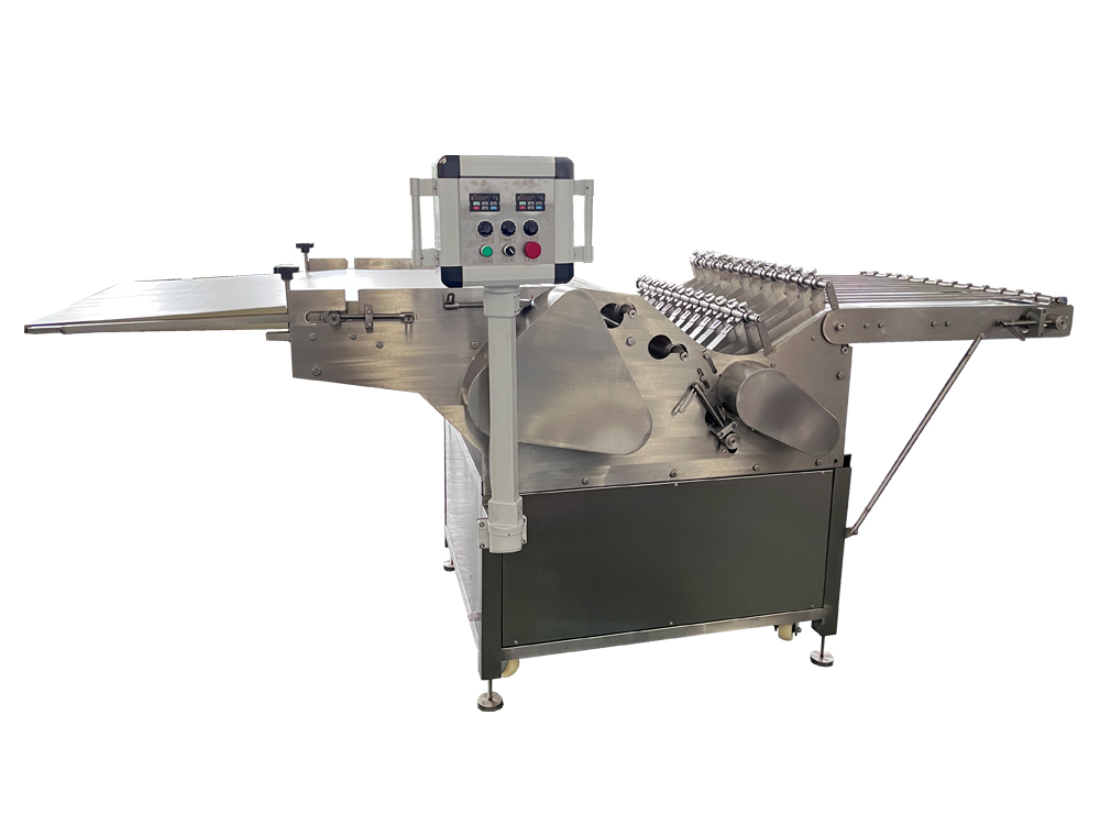 將和制好的面團(tuán)通過(guò)多次連續(xù)軋面成型、裝盒、蒸制、烘烤、噴油、撒料等,得到適合眾多廠家生產(chǎn)要求。